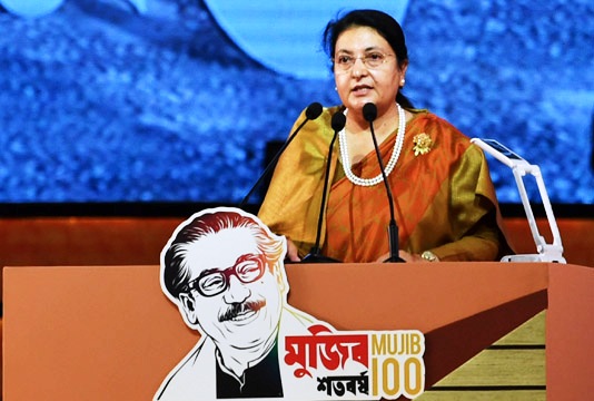নেপালের প্রেসিডেন্ট বঙ্গবন্ধুর জন্মশতবার্ষিকী এবং দেশের স্বাধীনতার সুবর্ণজয়ন্তী উপলক্ষে দশ দিনব্যাপী বিশেষ কর্মসূচির ষষ্ঠ দিনের অনুষ্ঠানে এখানে জাতীয় প্যারেড গ্রাউন্ডে বক্তব্য রাখছিলেন।