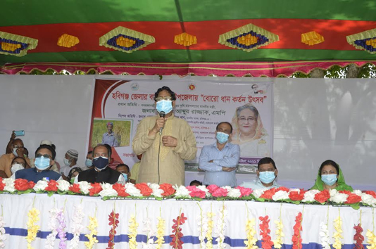 হবিগঞ্জের জেলা প্রশাসক ইশরাত জাহানের সভাপতিত্বে অনুষ্ঠানে স্থানীয় সংসদ সদস্য এডভোকেট মো. আবু জাহির, কৃষি মন্ত্রণালয়ের সিনিয়র সচিব মো. মেসবাহুল ইসলাম, বিএডিসির চেয়ারম্যান ড. অমিতাভ সরকার, কৃষি সম্প্রসারণ অধিদপ্তরের মহাপরিচালক মো. আসাদুল্লাহ, ব্রির ডিজি ড. মো. শাহজাহান কবীর, পুলিশ সুপার মোহাম্মদ উল্যা, কৃষি সম্প্রসারণ অধিদপ্তর হবিগঞ্জের উপপরিচালক মো. তমিজ উদ্দিন খান, জেলা আওয়ামীলীগের সাধারণ সম্পাদক এডভোকেট আলমগীর চৌধুরী প্রমুখ বক্তব্য রাখেন।