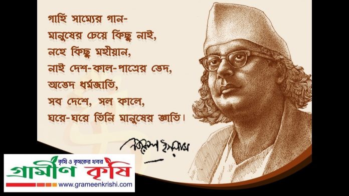 গ্রামীণ কৃষি ডেস্কঃ শ্রদ্ধা এবং ভালোবাসায় জাতীয়কবি কাজী নজরুল ইসলামের ১২২তম জন্মবার্ষিকী মঙ্গলবার (২৫ মে, ২০২১) উদযাপিত হয়েছে।