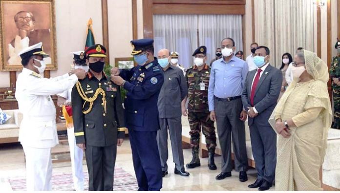 প্রধানমন্ত্রী শেখ হাসিনার উপস্থিতিতে আজ সকালে গণভবনে নতুন সেনা প্রধানকে এই র্যাংক ব্যাজ পরানো হয়।