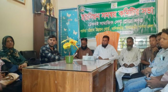 এম.জুলফিকার আলী ভুট্টো, খাগড়াছড়িঃ খাগড়াছড়ি জেলার মানিকছড়ি উপজেলার তিনট্যহরী ইউনিয়নের টেকসই সামাজিক সেবা প্রদান প্রকল্প’র ইউনিয়ন সমন্বয় কমিটি সভা অনুষ্ঠিত হয়েছে। ইউনিয়ন সমন্বয় সভা পরিচালনা করেন সহকারী প্রকল্প ব্যবস্থাপক রুবেল সাহা।