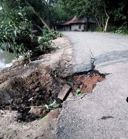 তানোরে রাাস্তা সংস্কার কাজ শেষ না হতেই ভাঙন