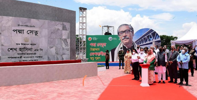 প্রধানমন্ত্রী শেখ হাসিনা আর্থিক, প্রকৌশল এবং রাজনৈতিক ত্রিমুখী চ্যালেঞ্জ মোকাবেলা করে দীর্ঘতম সেতুটি উদ্ধোধন করার সঙ্গে সঙ্গে বাংলাদেশ আজ তার স্বপ্ন পূরণ প্রত্যক্ষ করছে।