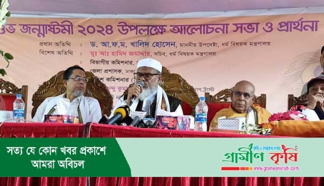 ধর্ম উপদেষ্টা আজ সোমবার বিকালে রাজধানীর মতিঝিলে শ্রী শ্রী লক্ষীনারায়ণ জিউ মন্দির প্রাঙ্গণে ‘শুভ জন্মাষ্টমী’ উপলক্ষ্যে আয়োজিত আলোচনা সভা ও প্রার্থনা অনুষ্ঠানে প্রধান অতিথির বক্তৃতায় এসব কথা বলেন।