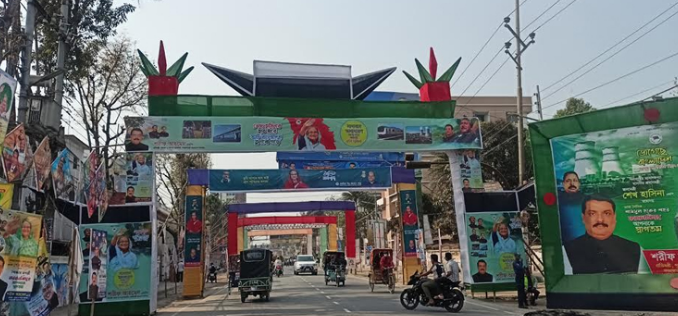 রঙিন ব্যানার, ফেস্টুন আর বিলবোর্ডে নতুন রুপে সেজেছে পুরো নগরী। প্রধান প্রধান সড়ক ও অলিগলিতে শোভা পাচ্ছে বঙ্গবন্ধু কন্যাকে স্বাগত জানিয়ে টানানো পোস্টার-ব্যানার। বর্ণিল আলোকসজ্জা ও রং-তুলির আঁচড়ে নগরী যেন নতুন সাজে সজ্জিত হয়েছে।