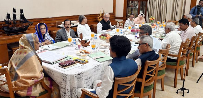 জাতির পিতার ছোট কন্যা শেখ রেহানা সভায় উপস্থিত ছিলেন।