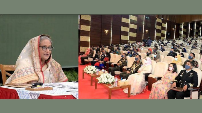 শেখ হাসিনা আজ সকালে ডিফেন্স সার্ভিসেস কমান্ড এন্ড স্টাফ কলেজ (ডিএসসিএসসি) এর ‘ডিএসসিএসসি কোর্স ২০২১-২০২২’ এর গ্রাজুয়েশন প্রদান অনুষ্টানে প্রধান অতিথি’র ভাষণে এ কথা বলেন।