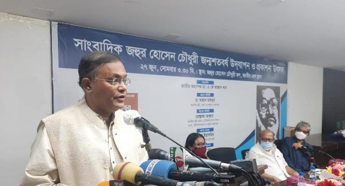 তথ্য ও সম্প্রচারমন্ত্রী বলেন, ‘জাতির পিতা বঙ্গবন্ধু শেখ মুজিবুর রহমানের নেতৃত্বে বাঙালি জাতির স্বাধিকার থেকে স্বাধীনতা সংগ্রাম, স্বাধীনতা যুদ্ধের মাধ্যমে স্বাধীনতা অর্জন। কিন্তু সেটির পেছনে কিছু প্রথিতযশা মানুষ, কিছু লেখক, বুদ্ধিজীবী, সাংবাদিকদের অনবদ্য ভূমিকা না থাকলে জাতির মনন তৈরি হতো না। তাদের মধ্যে একজন হচ্ছেন জহুর হোসেন চৌধুরী।’ সাংবাদিকতা শুধুমাত্র একটি পেশা নয়, অনেক সাংবাদিকের কাছে এটি একটি ব্রত উল্লেখ করে ড. হাছান বলেন, ‘দেশ গঠনে সাংবাদিকদের ভূমিকা অত্যন্ত গুরুত্বপূর্ণ। দেশ গঠনটা কেমন সেটিও একটি প্রশ্ন। পাশ্চাত্যের মতো শুধু বস্তুগত উন্নয়নই নয়, প্রয়োজন মানবিক সামাজিক রাষ্ট্র গঠন। এজন্য প্রয়োজন মানবিকতার বিকাশ, যে মানবিকতা দিনে দিনে লোপ পাচ্ছে। উন্নয়নের সাথে যন্ত্রের ব্যবহারের সাথে সাথে মানুষও যন্ত্র হয়ে যাচ্ছে। সেখান থেকে মানুষকে রক্ষা করতে হবে সমাজকে রক্ষা করতে হলে, সেজন্য মানবিকতার উন্নয়ন প্রয়োজন।’