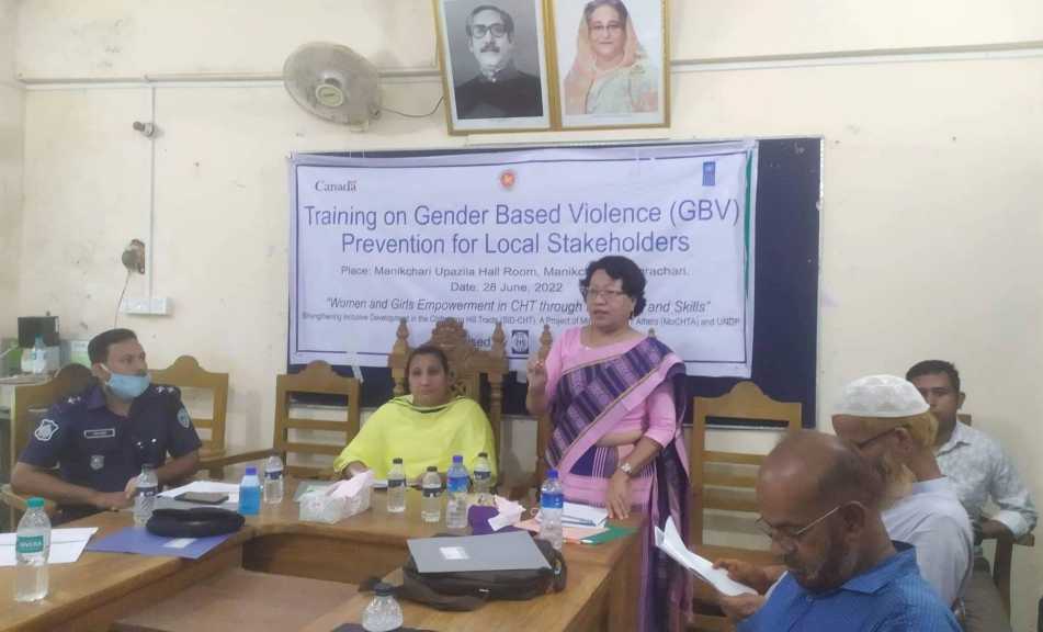 এম.জুলফিকার আলী ভুট্টো, খাগড়াছড়িঃ মঙ্গলবার ‘শিক্ষা ও দক্ষতার মাধ্যমে পার্বত্য চট্টগ্রামে মেয়ে শিশু ও নারীর ক্ষমতায়ন’ শীর্ষক প্রকল্পে লিঙ্গ ভিত্তিক সহিংসতা প্রতিরোধে পার্বত্য জেলা খাগড়াছড়ির মানিকছড়ি উপজেলায় দিন ব্যাপি প্রশিক্ষণ কর্মশালা অনুষ্ঠিত হয়েছে।