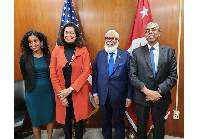প্রধানমন্ত্রীর বেসরকারি শিল্প ও বিনিয়োগ বিষয়ক উপদেষ্টা সালমান এফ. রহমান, এমপি, যুক্তরাষ্ট্রের বেসামরিক নিরাপত্তা, গণতন্ত্র ও মানবাধিকার বিষয়ক আন্ডার সেক্রেটারি উজরা জেয়ার সঙ্গে শুক্রবার ওয়াশিংটন ডিসিতে মার্কিন পররাষ্ট্র দপ্তরে বৈঠক করেন।