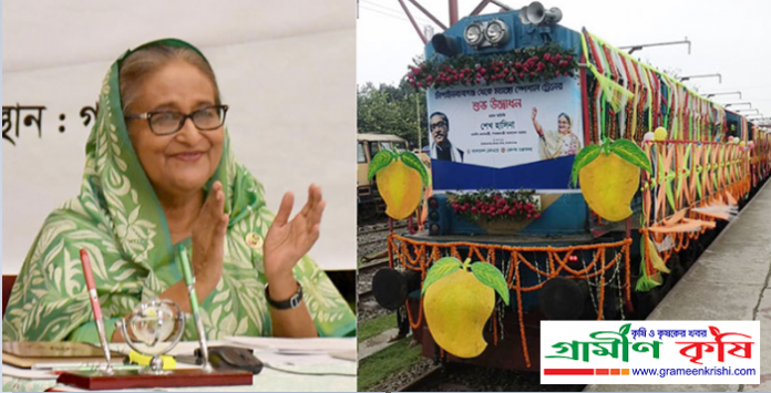 প্রধানমন্ত্রী শেখ হাসিনা বৃহস্পতিবার (২৭ মে,২০২১) অপরাহ্নে গণভবন থেকে ভিডিও কনফারেন্সের মাধ্যমে ‘ম্যাংগো স্পেশাল ট্রেন’ চলাচলের উদ্বোধন করেন।