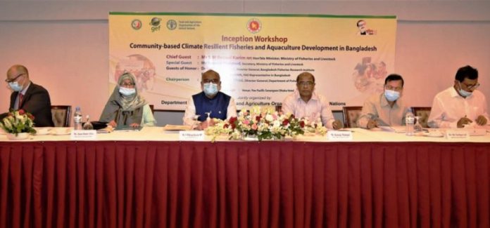 বৃহস্পতিবার রাজধানীর একটি হোটেলে মৎস্য অধিদপ্তর এবং জাতিসংঘের খাদ্য ও কৃষি সংস্থা (এফএও) কর্তৃক বাস্তবায়নাধীন ‘কমিউনিটি বেজড ক্লাইমেট রেজিলিয়েন্ট ফিসারিজ এন্ড অ্যাকোয়াকালচার ডেভেলপমেন্ট ইন বাংলাদেশ’ শীর্ষক প্রকল্পের উদ্বোধনী কর্মশালায় প্রধান অতিথির বক্তব্যে মন্ত্রী এ সব কথা বলেন।