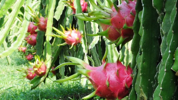 গ্রামীণ কৃষি ডেস্কঃ যশোরের চৌগাছায় বাণিজ্যিকভাবে চাষ হচ্ছে ভিনদেশী ড্রাগন ফল। স্থানীয় উদ্যোক্তা ইসমাইল হোসেন প্রথমে ড্রাগন চাষে বিনিয়োগ করে সফলতা অর্জন করেন। তার সফলতা দেখে উপজেলার বিভিন্ন ইউনিয়নে ইতোমধ্যেই ১০ হেক্টর জমিতে ড্রাগন চাষ হচ্ছে। এতে লাভবান হচ্ছেন বাগানের মালিকরা।