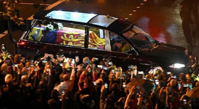 স্কটল্যান্ডে তার মৃত্যুর ছয় দিন পর রানী এলিজাবেথের মরদেহ তার বাকিংহাম প্রাসাদ থেকে ঘোড়ায় টানা গাড়িতে করে ওয়েস্টমিনিস্টার হলে নিয়ে যাওয়া হবে। আগামী সোমবার রানীর শেষকৃত্যের আগ পর্যন্ত চারদিন তার মরদেহ সেখানে রাখা হবে।