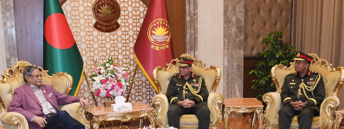 রাষ্ট্রপতি মোঃ সাহাবুদ্দিনের সঙ্গে বঙ্গভবনে সাক্ষাৎ করেছেন সেনাবাহিনীর নবনিযুক্ত চিফ অফ জেনারেল স্টাফ (সিজিএস) লেফটেন্যান্ট জেনারেল ওয়াকার -উজ-জামান এবং সশস্ত্র বাহিনী বিভাগের প্রিন্সিপাল স্টাফ অফিসার (পিএসও) লেফটেন্যান্ট জেনারেল মিজানুর রহমান শামীম।