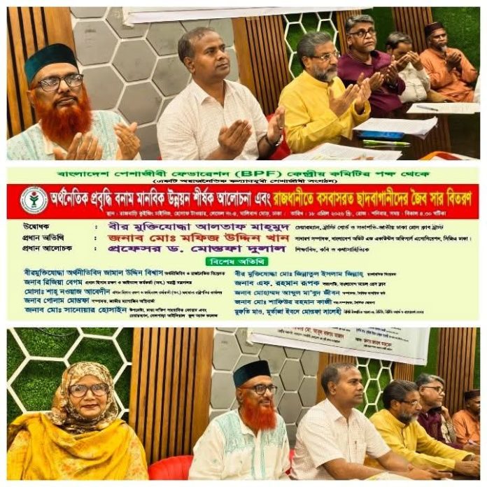 গত ১৮ এপ্রিল ২০২৬ খ্রি., শনিবার বিকেলে এসএসসি-২০২৬ পরীক্ষার্থীদের সার্বিক সাফল্য কামনা করে এক বিশেষ দোয়ার আয়োজন করে বাংলাদেশ পেশাজীবী ফেডারেশন (BPF) — একটি অরাজনৈতিক কল্যাণমুখী পেশাজীবী সংগঠন। অনুষ্ঠানটি সংগঠনের কেন্দ্রীয় কার্যনির্বাহী কমিটির উদ্যোগে অনুষ্ঠিত হয়।