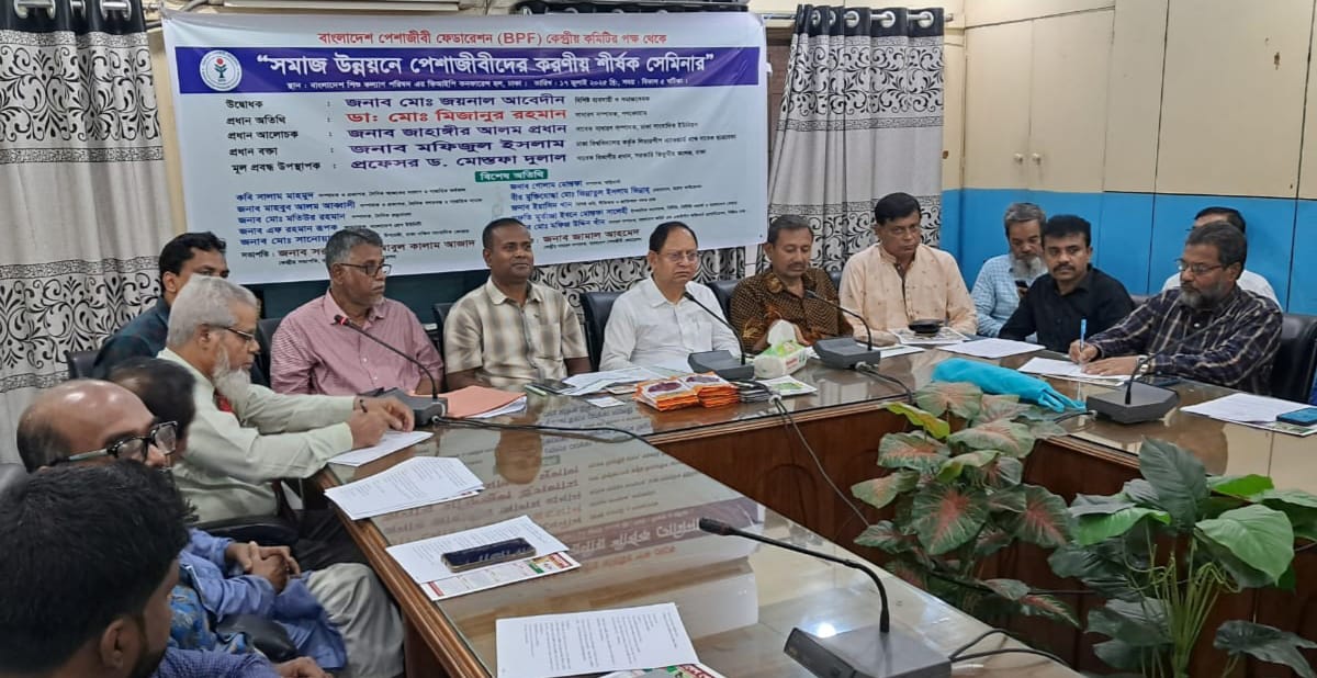 বাংলাদেশ পেশাজীবী ফেডারেশন (BPF) কেন্দ্রীয় কমিটির উদ্যোগে “সমাজ উন্নয়নে পেশাজীবীদের করণীয়” শীর্ষক এক সেমিনার আজ বিকেল ৫টায় রাজধানীর তোপখানা রোডস্থ বাংলাদেশ শিশু কল্যাণ পরিষদের ভিআইপি কনফারেন্স হলে অনুষ্ঠিত হয়।