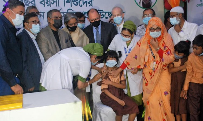 ৫-১১ বছর বয়সী শিশুদের করোনা টিকা প্রদানের মাধ্যমে কার্যক্রমের উদ্বোধন করলেন স্বাস্থ্য ও পরিবার কল্যাণ মন্ত্রী জাহিদ মালেক।